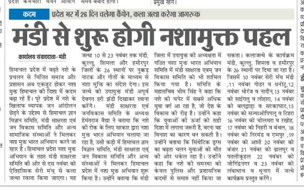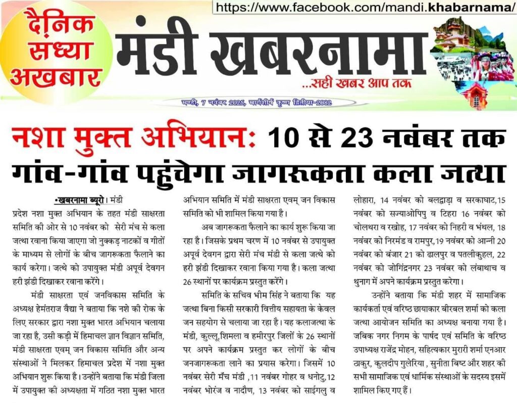 नशा मुक्ति अभियान 2025 – (10 से 23 नवंबर तक)